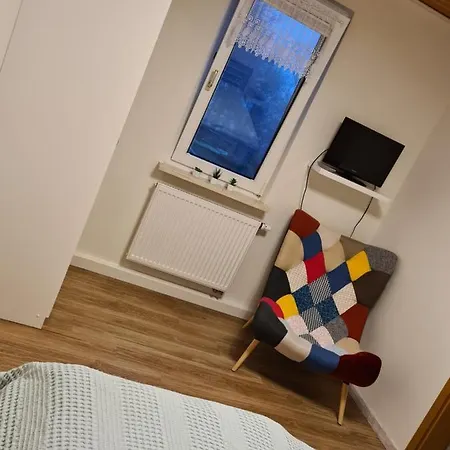A Schones Doppelzimmer Mit Kuche Und Badezimmer apartman kínál egy konyhát, valamint szobákat íróasztallal, kávé/teafőzővel és síkképernyős műholdas TV-vel. Az apartman 4 km-re fekszik a GoetheStadtMuseum területétől.